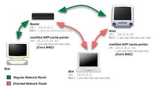 3. Attacking host Eve routes all traffic between Alice and the router which sniffing the traffic flowing through Eve.
